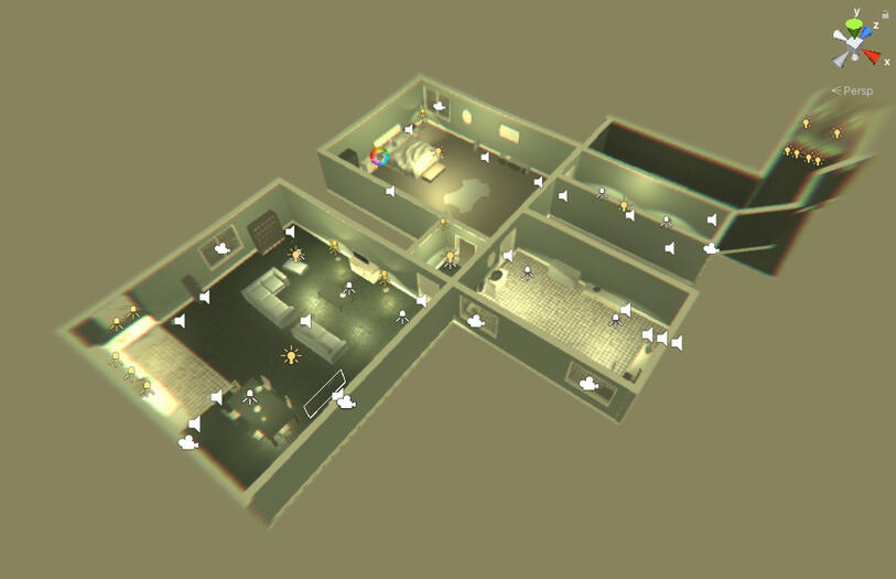 For my individual addition, I've decided to go for something very unexpected and more game-like. As in the game you play as the family dog, I have added an easter egg room where things take a dark turn. When the specific place is found, a door appears that leads to the hidden corridor where an unsettling image is found and creepy music plays.To get to the hidden room, the player has to follow clues found in the house that lead to the room, so if the player decides to follow the clues he has a chance to discover the dark secrets of the household.The image of the dog is the actual dog the player is playing as, and as I found it a little disturbing to look at I decided to make it into a scarry easter egg. It was inspired by GoatSimulator's easter eggs.
